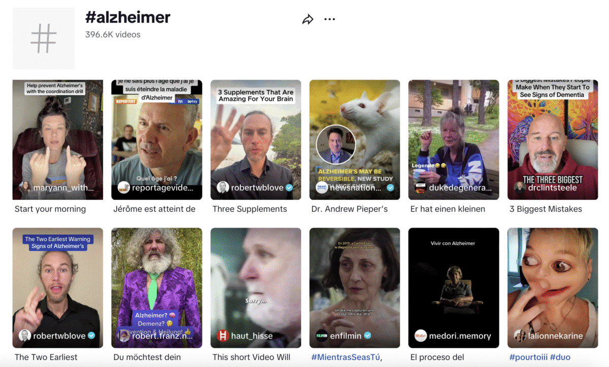 These figures, coupled with the fact that dementia is one of the most feared age-related conditions, make the disease a popular subject of online discussion; there are more than 390,000 videos carrying the hashtag #alzheimer on TikTok, for instance.