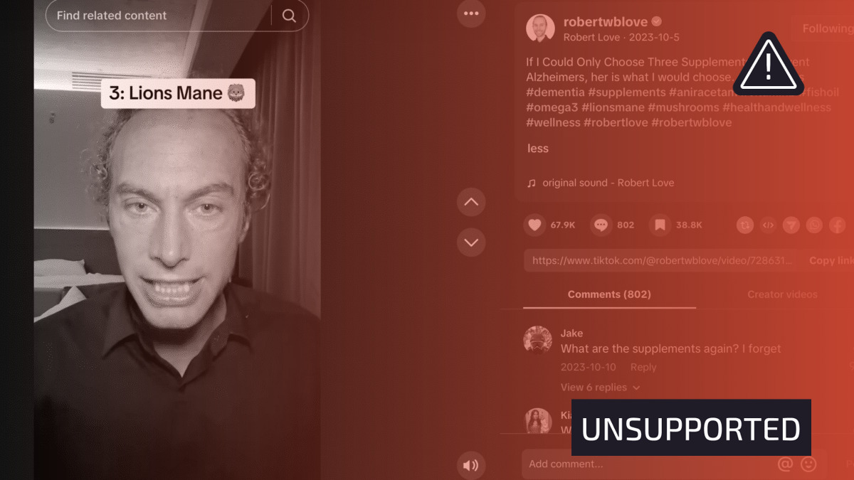 Misinformation about Alzheimer’s isn’t limited only to its causes. Unsurprisingly, social media platforms have become an avenue for marketing supplements claimed to prevent or treat the condition. Science Feedback examined some of these claims in an earlier review and found them to be unsubstantiated by clinical evidence. Here we take a look at two supplements in particular.