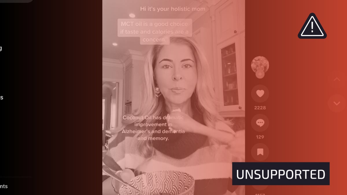 Consume coconut oil to prevent Alzheimer’s—that’s what videos (see here and here) by health influencer Robert Love and naturopath Barbara O’Neill are telling TikTok viewers. But the evidence for this claim is shaky, as we’ll see later on.