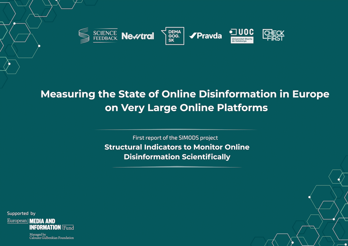 This report is published under the SIMODS project, which measures Structural Indicators of online mis/disinformation in Europe across major platforms. It is led by Science Feedback, in partnership with the Universitat Oberta de Catalunya, Check First, Newtral, Demagog SK, and Pravda.