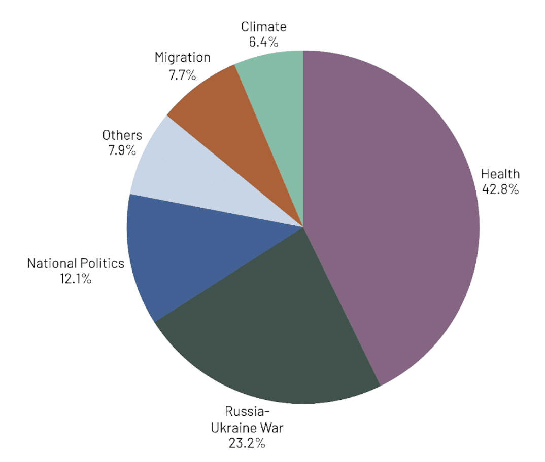 Figure 2 – Topic distribution of mis/disinformation posts across the studied data sample.