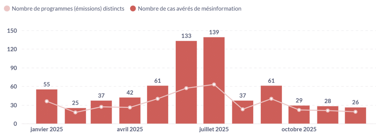 La grande majorité de ces narratifs ont été détectés dès le premier trimestre 2025 et ont ensuite été alimentés par des cas nouveaux tout au long de l’année. L’ensemble des données collectées, ainsi que les vérifications des faits associées à chacun de ces narratifs, sont accessibles publiquement.